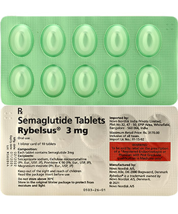 - Običajen odmerek rybelsusa je 3 mg na dan, pri čemer se lahko po prvih 30 dneh poveča na 7 mg ali 14 mg dnevno.